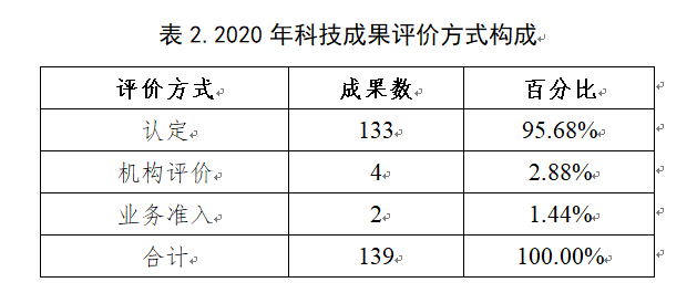 2020年全國(guó)氣象部門科技成果的評(píng)價(jià)方式以認(rèn)定為主,機(jī)構(gòu)評(píng)價(jià)和業(yè)務(wù)準(zhǔn)入的成果所占比例相對(duì)較小,僅占成果總數(shù)的4.32%。