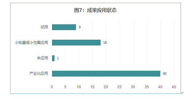 成果應(yīng)用狀態(tài)主要以產(chǎn)業(yè)化應(yīng)用為主,產(chǎn)業(yè)化率高達(dá)58.8%,具體數(shù)據(jù)詳見圖7。