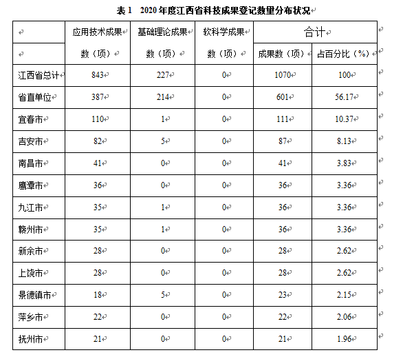 2020年度江西省科技成果登記統(tǒng)計分析報告