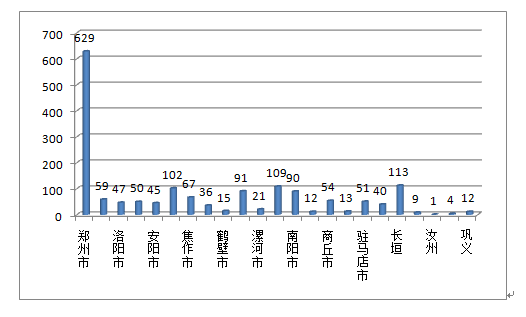 2020年省轄市推薦登記的1531項(xiàng)成果中,鄭州市629項(xiàng),占24.92%;新鄉(xiāng)市102項(xiàng),占4.04%;洛陽市47項(xiàng),占1.86%;安陽市45項(xiàng),占1.78%;濮陽市36項(xiàng),占1.43%;開封市59項(xiàng),占2.34%;南陽市90項(xiàng),占3.57%;焦作市67項(xiàng),占2.65%;駐馬店市51項(xiàng),占2.02%;信陽市12項(xiàng),占0.48%;平頂山市50項(xiàng),占1.98%;許昌市91項(xiàng),占3.61%;商丘市54項(xiàng),占2.14%;鶴壁市15項(xiàng),占0.59%;濟(jì)源市40項(xiàng),占1.58%;漯河市21項(xiàng),占0.83%;三門峽市109項(xiàng),占4.32%;周口市13項(xiàng),占0.52%;長垣縣113項(xiàng),占4.48%;汝州市1項(xiàng),占0.04%;鞏義市12項(xiàng),占0.48%;永城市9項(xiàng),占0.36%;滑縣4項(xiàng),占0.16%。