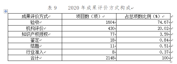 2020年度成果評(píng)價(jià)方式有:驗(yàn)收、機(jī)構(gòu)評(píng)價(jià)、知識(shí)產(chǎn)權(quán)授權(quán)、鑒定、結(jié)題等。