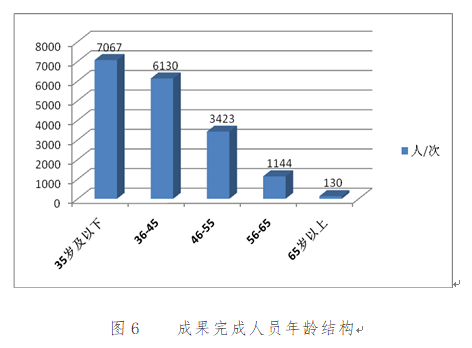 35歲及以下年齡段成果完成人員所占比例最高,達(dá)到 39.49 %。