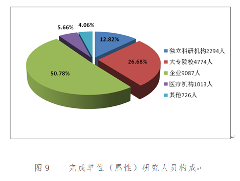 獨(dú)立科研機(jī)構(gòu) 2294人/次,占本年度成果完成人員總數(shù)的 12.82 %;