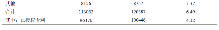 全國登記科技成果質量逐年提升。76521項登記的科技成果共產出知識產權120387項,同比增長6.49%。其中,已授權專利100446項,同比增長4.12%(見表1-4)。