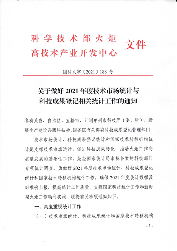 關(guān)于做好2021年度技術(shù)市場統(tǒng)計與科技成果登記相關(guān)統(tǒng)計工作的通知