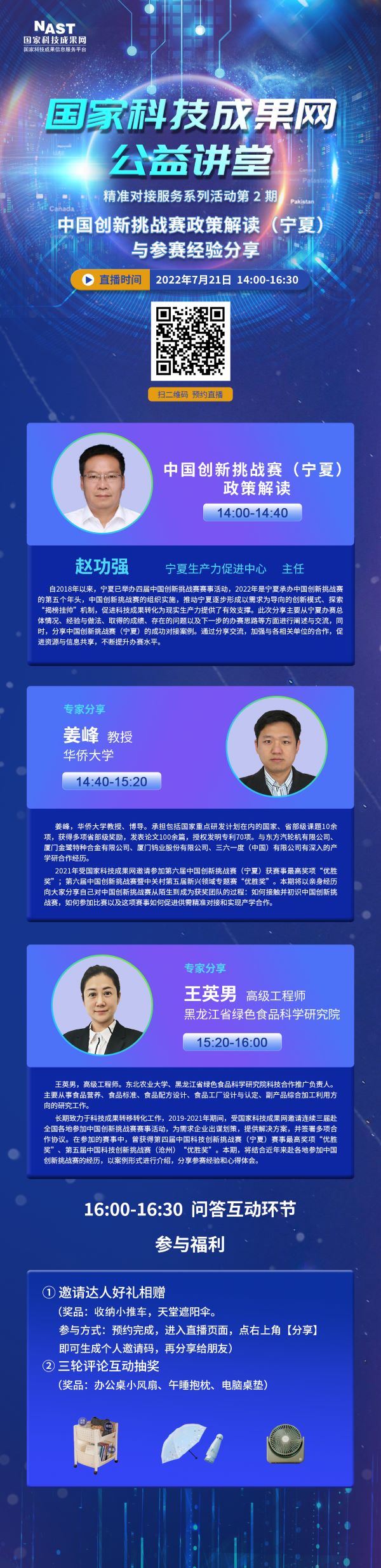 直播 | 7月21日 國(guó)家科技成果網(wǎng)公益講堂第2期