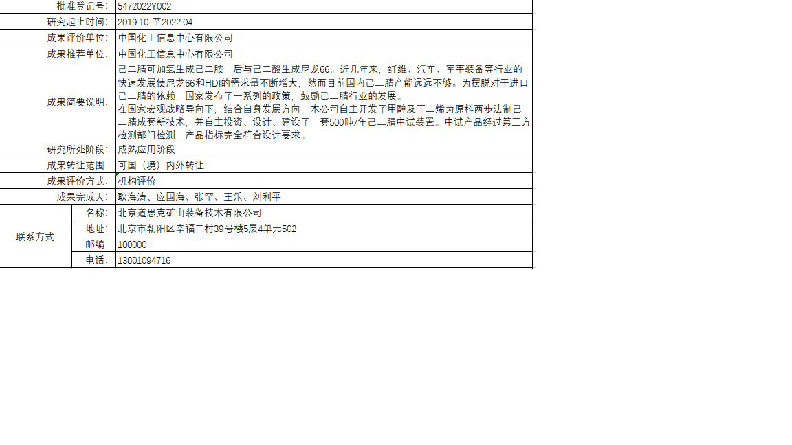 根據(jù)中國中化控股有限責(zé)任公司科技成果登記管理辦法,按照科技成果管理程序,現(xiàn)將中國中化控股有限責(zé)任公司登記的成果予以公告。對公告上登記的科技成果內(nèi)容持有異議者,可與中國中化控股有限責(zé)任公司科技成果登記中心聯(lián)系。其管理有效期(自公告之日起)為期7天。