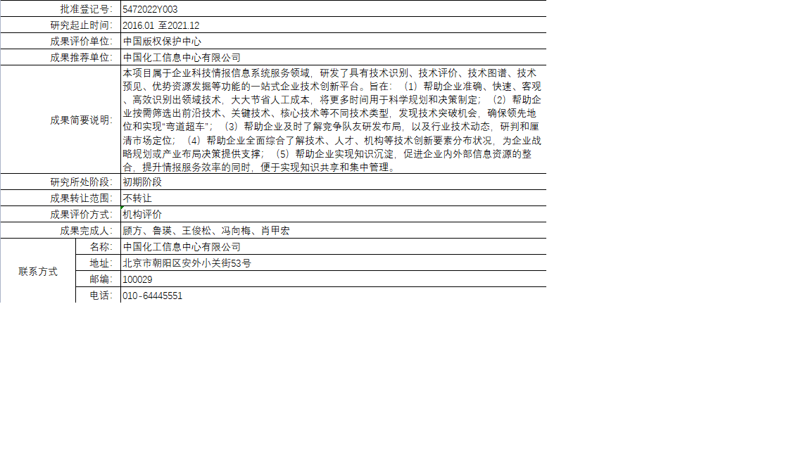 根據(jù)中國中化控股有限責(zé)任公司科技成果登記管理辦法,按照科技成果管理程序,現(xiàn)將中國中化控股有限責(zé)任公司登記的成果予以公告。對公告上登記的科技成果內(nèi)容持有異議者,可與中國中化控股有限責(zé)任公司科技成果登記中心聯(lián)系。其管理有效期(自公告之日起)為期7天。