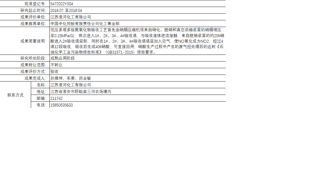 低壓多塔多級NOx吸收工藝治理硝化尾氣研究改造項(xiàng)目