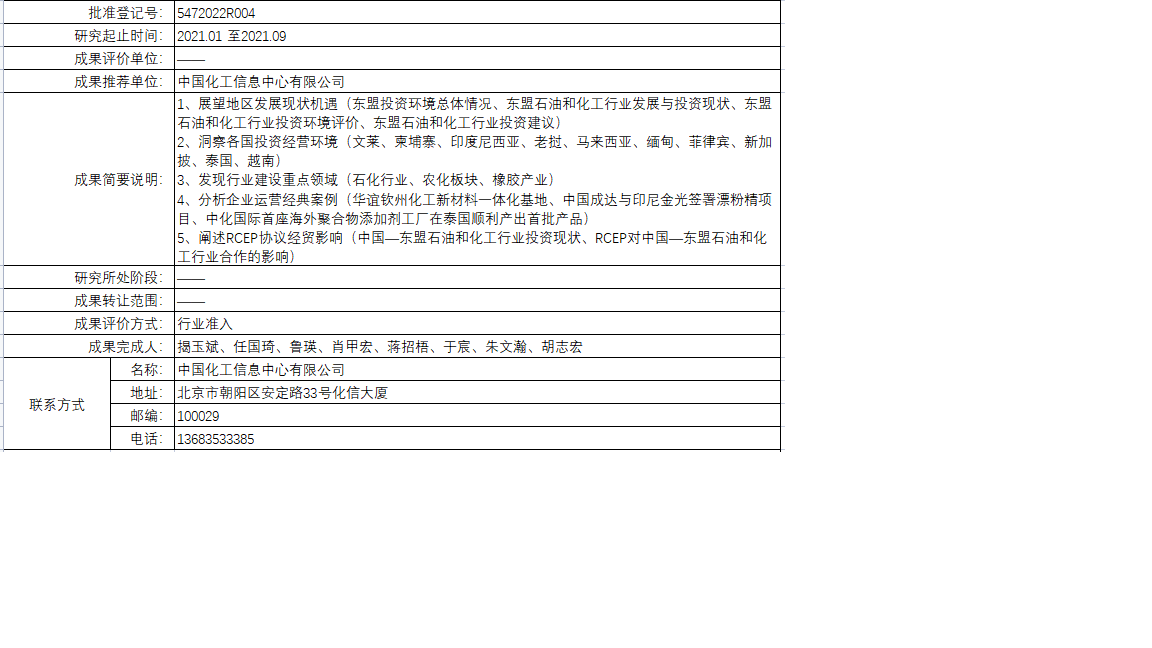 地址:北京市朝陽區(qū)安外小關(guān)街53號,中國化工信息中心NAST部 郵編:100029