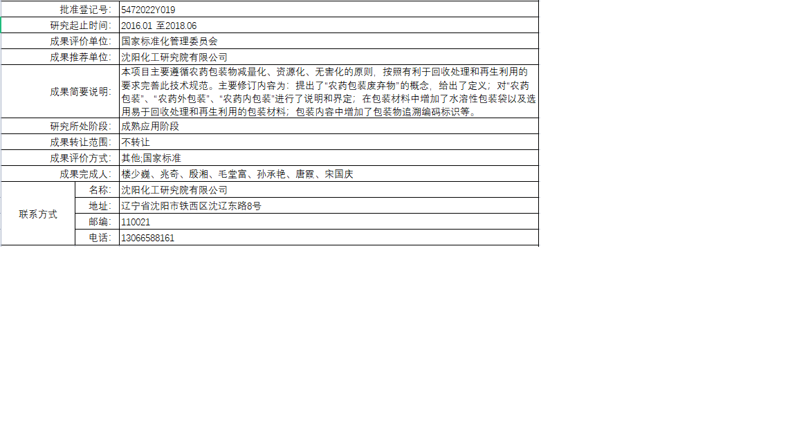根據(jù)中國中化控股有限責(zé)任公司科技成果登記管理辦法,按照科技成果管理程序,現(xiàn)將中國中化控股有限責(zé)任公司登記的成果予以公告。對公告上登記的科技成果內(nèi)容持有異議者,可與中國中化控股有限責(zé)任公司科技成果登記中心聯(lián)系。其管理有效期(自公告之日起)為期7天。