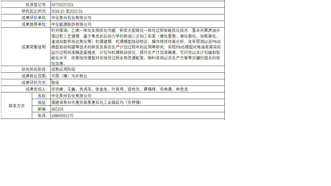 根據(jù)中國(guó)中化控股有限責(zé)任公司科技成果登記管理辦法,按照科技成果管理程序,現(xiàn)將中國(guó)中化控股有限責(zé)任公司登記的成果予以公告。對(duì)公告上登記的科技成果內(nèi)容持有異議者,可與中國(guó)中化控股有限責(zé)任公司科技成果登記中心聯(lián)系。其管理有效期(自公告之日起)為期7天。