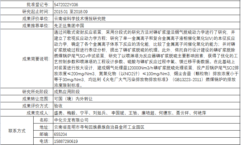 | 根據(jù)中國中化控股有限責(zé)任公司科技成果登記管理辦法,按照科技成果管理程序,現(xiàn)將中國中化控股有限責(zé)任公司登記的成果予以公告。對公告上登記的科技成果內(nèi)容持有異議者,可與中國中化控股有限責(zé)任公司科技成果登記中心聯(lián)系。其管理有效期(自公告之日起)為期7天。 |