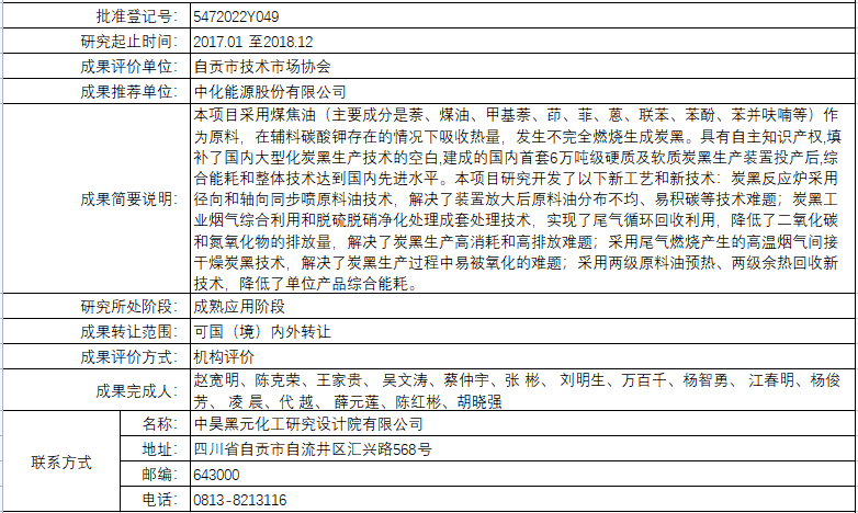 6萬噸級(jí)新工藝炭黑生產(chǎn)技術(shù)