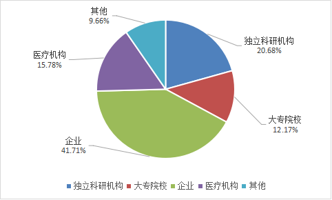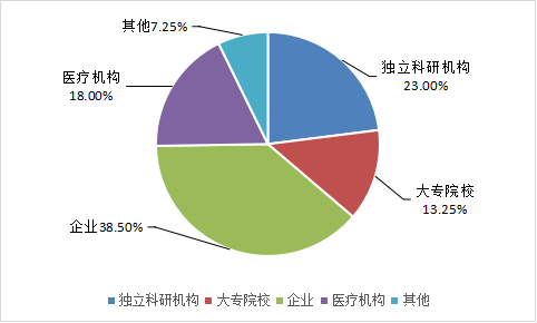 從統(tǒng)計(jì)結(jié)果看,企業(yè)、獨(dú)立科研機(jī)構(gòu)和醫(yī)療機(jī)構(gòu)是所登記成果中的科研開發(fā)主體(三者之和約占79.50%)。