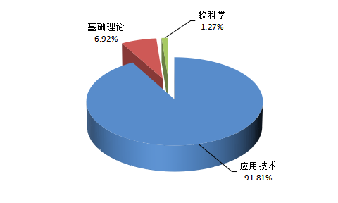2021年度河南省共登記科技成果2992項(xiàng),其中應(yīng)用技術(shù)類成果2747項(xiàng),占全部成果的91.81%;基礎(chǔ)理論類成果207項(xiàng),占全部成果的6.92%;軟科學(xué)類成果38項(xiàng),占全部成果的1.27%。