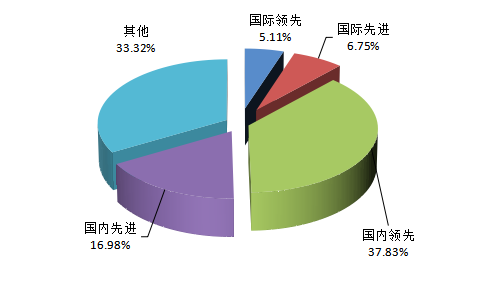 2021年度河南省登記的2992項(xiàng)科技成果中,達(dá)到國際領(lǐng)先水平的項(xiàng)目153項(xiàng),占全部成果的5.11%;達(dá)到國際先進(jìn)水平的項(xiàng)目202項(xiàng),占全部成果的6.75%;達(dá)到國內(nèi)領(lǐng)先水平的項(xiàng)目1132項(xiàng),占全部成果的37.83%;達(dá)到國內(nèi)先進(jìn)水平的項(xiàng)目508項(xiàng),占全部成果的16.98%,其他項(xiàng)目共997項(xiàng),占全部成果的33.32%。