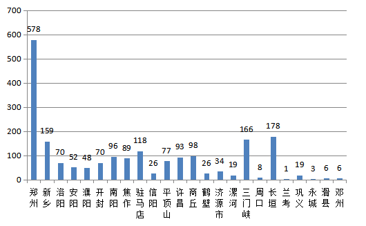 2021年省轄市推薦登記的1826項(xiàng)成果中,鄭州市578項(xiàng),占19.32%;新鄉(xiāng)市159項(xiàng),占5.31%;洛陽市70項(xiàng),占2.34%;安陽市52項(xiàng),占1.74%;濮陽市48項(xiàng),占1.60%;開封市70項(xiàng),占2.34%;南陽市96項(xiàng),占3.21%;焦作市89項(xiàng),占2.97%;駐馬店市118項(xiàng),占3.94%;信陽市26項(xiàng),占0.87%;平頂山市77項(xiàng),占2.57%;許昌市93項(xiàng),占3.11%;商丘市98項(xiàng),占3.28%;鶴壁市26項(xiàng),占0.87%;濟(jì)源市34項(xiàng),占1.14%;漯河市19項(xiàng),占0.64%;三門峽市166項(xiàng),占5.55%;周口市8項(xiàng),占0.27%;長垣縣178項(xiàng),占5.95%;蘭考1項(xiàng),占0.03%;鞏義市19項(xiàng),占0.64%;永城市3項(xiàng),占0.10%;滑縣6項(xiàng),占0.20%;鄧州市6項(xiàng),占0.20%。