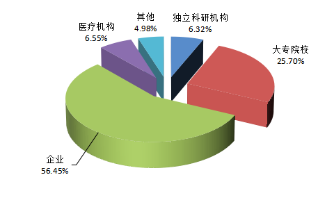 2021年度河南省登記的2992項(xiàng)成果中,獨(dú)立科研機(jī)構(gòu)完成的189項(xiàng),占6.32%;大專院校完成的769項(xiàng),占25.70%;企業(yè)完成的1689項(xiàng),占56.45%;醫(yī)療機(jī)構(gòu)完成的196項(xiàng),占6.55%;其他性質(zhì)單位完成的149項(xiàng),占4.98%。