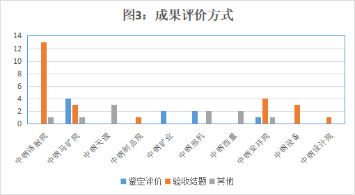 2021年中鋼集團(tuán)登記入庫(kù)的科技成果,其評(píng)價(jià)方式以鑒定評(píng)價(jià)、驗(yàn)收結(jié)題、其他評(píng)價(jià)方式為主。其中,鑒定評(píng)價(jià)多為外部權(quán)威機(jī)構(gòu)評(píng)價(jià);驗(yàn)收結(jié)題一般是承擔(dān)國(guó)家、省部級(jí)計(jì)劃的課題組組織評(píng)價(jià)或本企業(yè)借助專(zhuān)家組評(píng)審組織評(píng)價(jià);其他方式以外部機(jī)構(gòu)評(píng)估、評(píng)價(jià)為主。各所屬企業(yè)成果評(píng)價(jià)方式見(jiàn)下圖3。
