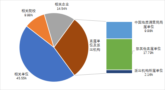 有249項成果由部直屬單位及派出機構登記,占登記總量的29.93%,其中,有83項成果由中國地質調查局局屬單位登記,占登記總量的9.98%,有148項成果由部其他直屬單位登記,占登記總量的17.79%,有18項成果由派出機構所屬單位登記,占登記總量的2.16%。
