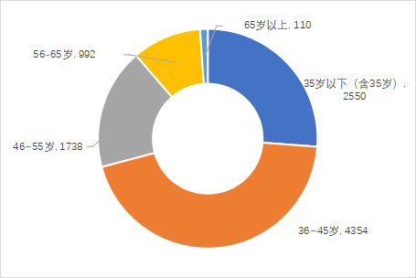 從年齡結構看,36-45歲研究人員是科研成果研發(fā)的主力軍,占總人次的44.68%;其次為35歲以下(含35歲)的研究人員,占總人次的26.17%;46-55歲的研究人員,占總人次的17.84%;56-65歲的研究人員,占總人次的10.18%。