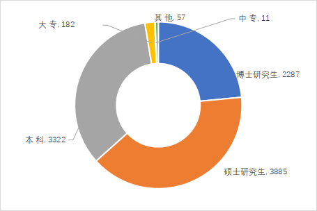從學歷構成看,科技成果完成人員主要集中在高學歷水平。其中,碩士研究生占總人次的39.87%,本科占總人次的34.09%,博士研究生占總人次的23.47%。
