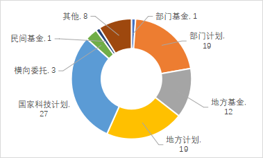 基礎理論成果的課題來源以國家科技計劃和部門科技計劃為主,分別占30.00%和21.11%。