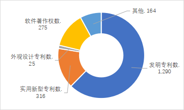 2022年度登記的科技成果共產出知識產權2070項,其中,已授權專利數(shù)1227項。從知識產權類型看,發(fā)明專利為主要類型,占知識產權總量的62.32%;其次為實用新型專利和軟件著作權,分別占知識產權總量的15.27%和13.29%。