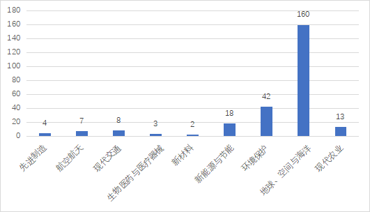2022年度登記的應用技術成果中,高新技術領域科技成果達329項,占應用技術成果總量的55.39%。應用技術成果主要分布在地球、空間與海洋高新技術領域,占高新技術領域科技成果總量的48.63%;其次為電子信息,占高新技術領域科技成果總量的21.88%;再次為環(huán)境保護,占高新技術領域科技成果總量的12.77%。