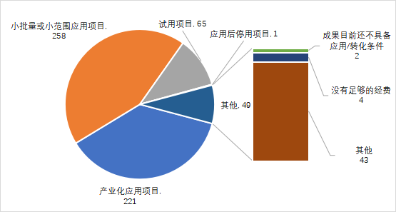 未應用或停用原因主要為成果目前還不具備應用/轉化條件、沒有足夠的經(jīng)費和其他原因。