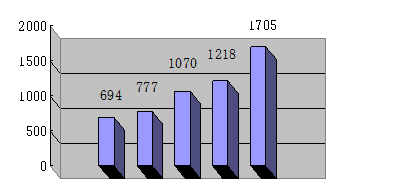 應(yīng)用項目數(shù) | 524 | 565 | 775 | 918 | 1305 |