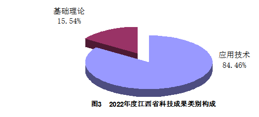 2022年度全省登記的科技成果仍以應(yīng)用技術(shù)成果為主,為1440項,與上年相比上升了40.08%,占全年登記成果總數(shù)的84.46%;基礎(chǔ)理論成果265項,占成果總數(shù)的15.54%,與上年相比上升了39.47%;軟科學成果0項(見圖3)。