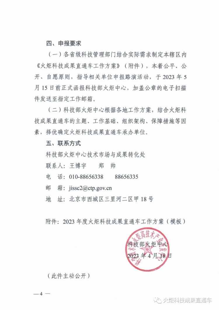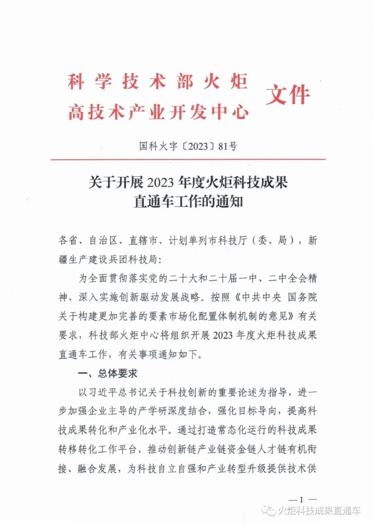 近日,科技部火炬中心發(fā)布《關(guān)于開展2023年度火炬科技成果直通車工作的通知》,標(biāo)志著2023年度火炬科技成果直通車工作正式啟動(dòng)。國(guó)家科技成果網(wǎng)將深度參與,負(fù)責(zé)向各承辦單位定向推送優(yōu)質(zhì)科技成果和專家團(tuán)隊(duì)。