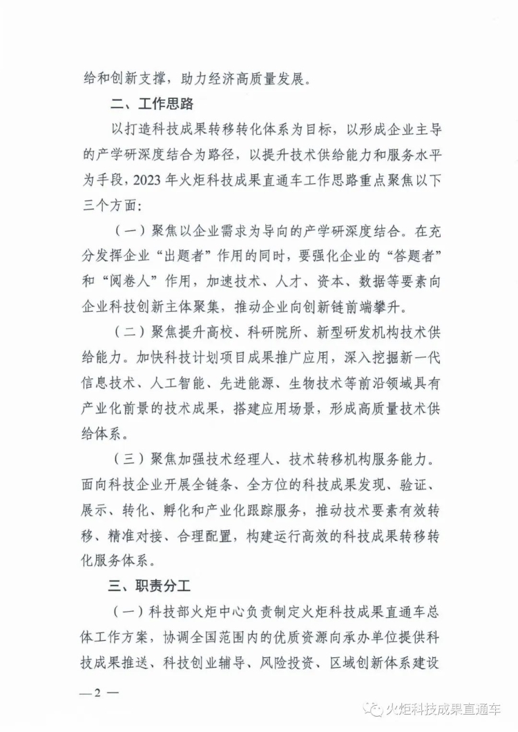 》,標(biāo)志著2023年度火炬科技成果直通車工作正式啟動。