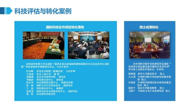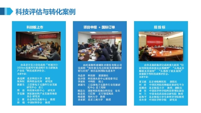 中心成立15年來,組建了包括部委領(lǐng)導(dǎo)、院士首席、行業(yè)專家、 金融專家等6000+專家?guī)臁⒄莆樟?span lang="EN-US">5400+項目成果、200+金融機構(gòu)等 戰(zhàn)略資源,并與多家國家部委職能機構(gòu)、國家科研機構(gòu)、駐華使館、 航空航天、行業(yè)協(xié)會等建立了項目推薦通道。