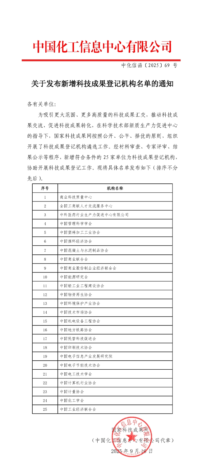 通知|關于發(fā)布新增科技成果登記機構名單的通知