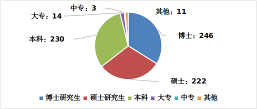 成果完成人學(xué)歷以研究生為主,占總?cè)舜蔚谋戎?/span>為64.5%,其中博士研究生占研究生總數(shù)的52.6%;年齡以36-45歲為主,占總?cè)舜蔚谋戎?/span>為44.9%,較上年提高3.85個(gè)百分點(diǎn);職稱以副高級(jí)以上為主,占總?cè)舜蔚谋戎?/span>為66.8%,其中院士2人次。(見圖5、6、7)