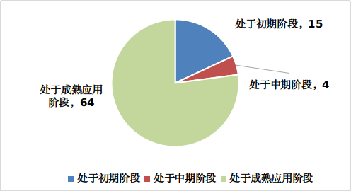 登記的83項(xiàng)應(yīng)用技術(shù)成果中,處于實(shí)驗(yàn)室、小試等初期階段的成果15項(xiàng),占應(yīng)用技術(shù)成果的18.1%;處于中試或設(shè)備的樣機(jī)、試樣等中期階段的成果4項(xiàng),占應(yīng)用技術(shù)成果的4.8%;處于成熟應(yīng)用階段的成果64項(xiàng),占應(yīng)用技術(shù)成果的77.1%。(見圖10)